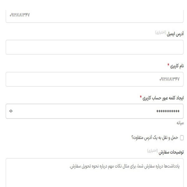 موقع ثبت سفارش سایت از شما عضویت میخواد . میتوانید پایین همین فرم ارسال و و ادرس دو گزینه براتون طراحی شده برای اینکه راحت باشید و فراموش نکنید میتونید به جای نام کاربری شماره تلفن خود و ب جای پسورد هم شماره تلفن خودتون رو بزارید تا هیچ وقت ما رو فراموش نکنید .