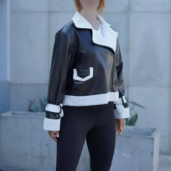 Buffalo cropped jacket with diagonal zipper, free size, made of guaranteed Tir Komoni leather, available only in black. Suitable for wholesale purchase and sales at an affordable price, no retail sales.