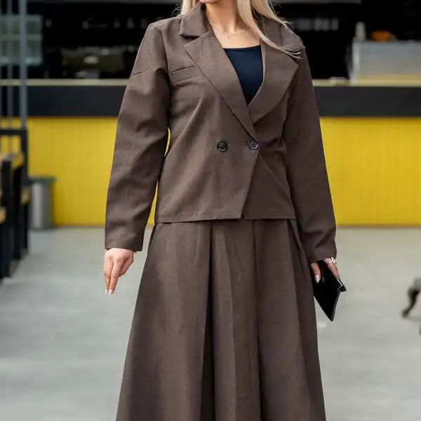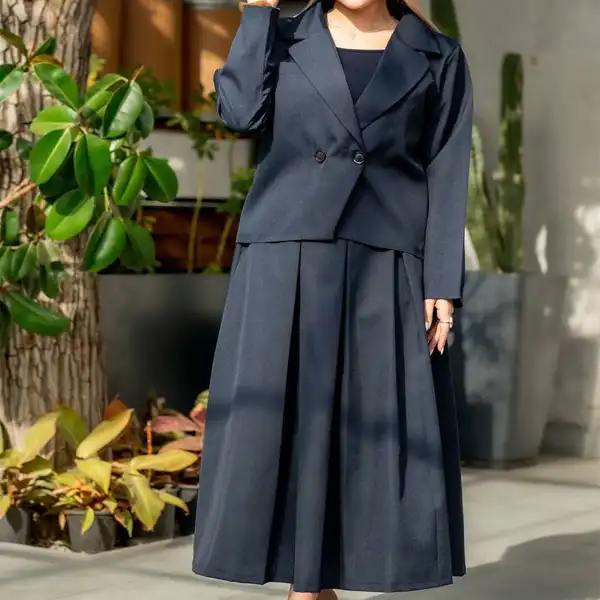 کت و دامن دخترانه 2 دکمه یکی از مدل‌های پرفروش در حوزه پوشاک زنانه است که به دلیل طراحی ساده و شیک، همیشه در لیست محصولات پرتقاضا قرار دارد. اگر به دنبال خرید کت و دامن دخترانه برای فروشگاه خود هستید یا قصد فروش عمده این محصول را دارید، این مدل با پارچه فاستونی انتخابی هوشمندانه خواهد بود. طراحی دو دکمه در قسمت جلویی کت، استایلی رسمی و در عین حال جذاب ایجاد می‌کند که برای موقعیت‌های مختلف قابل استفاده است.